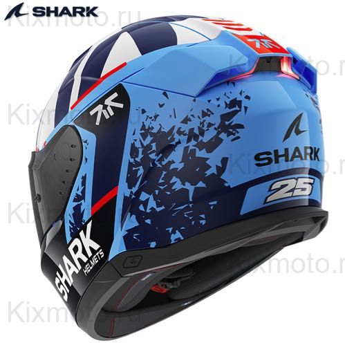 Шлем Shark Skwal i3 Replica Raul Fernandez с встроенными LED-стоп-сигналами, ударопрочной оболочкой Lexan, визором Pinlock 70 и комфортной посадкой Best Fit. Сертификация ECE 22.06, быстрая замена визора и эффективная вентиляция Air Stream.